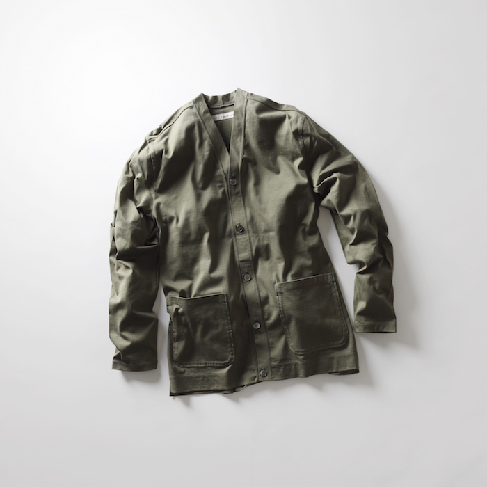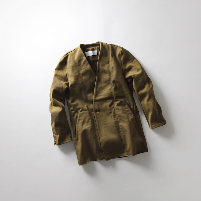 定番のものとは趣の違う、カーディガンやコートのようなシルエットのノーカラージャケットと、