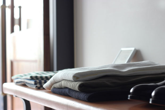 新着のVネックTee、やや横に開いたネックのハーフスリーブTee、そして同素材のカーディガンの3型です。