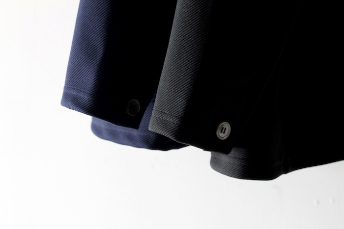 一般的なテーラードジャケットには見られないカットソー素材ならではの柔らかで角の取れた表情と、