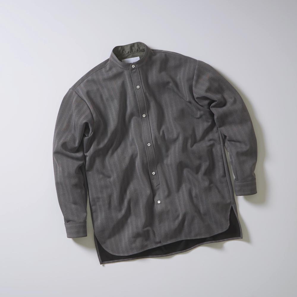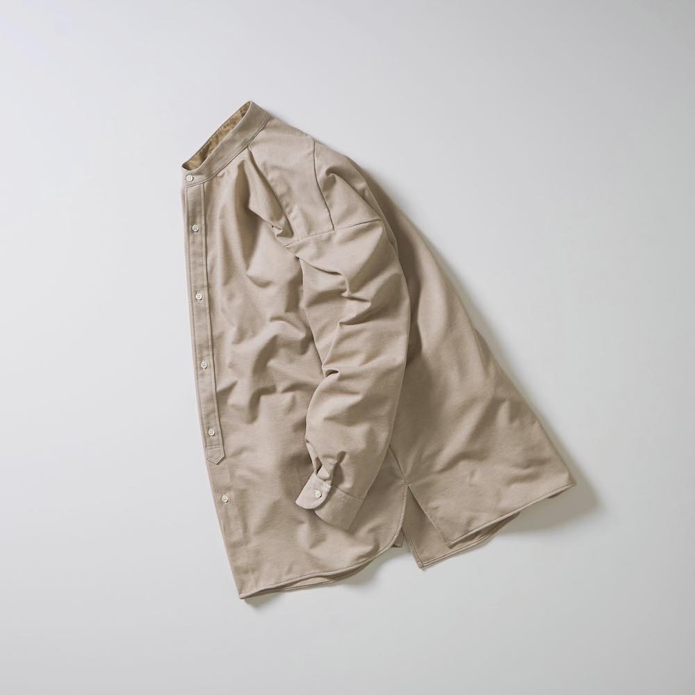 すっきりとしたバンドカラーはインナーに合わせてもコーディネイトの干渉が少なく幅広いスタイリングを楽しむことができるでしょう。