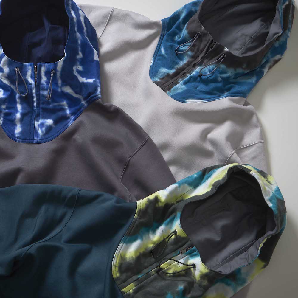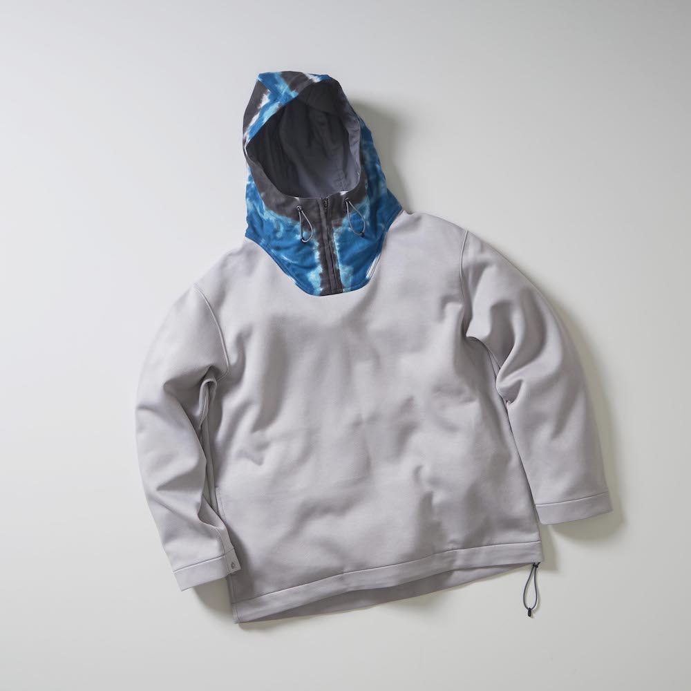 ゆとりのあるプルオーバーパーカのディテールに注染を施したフードを合わせた“SWITCHING PO PARKA”。