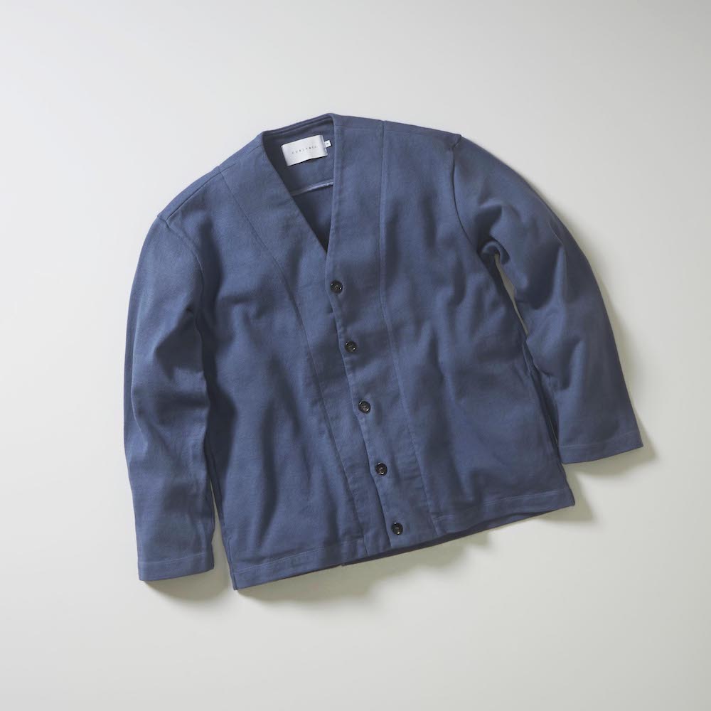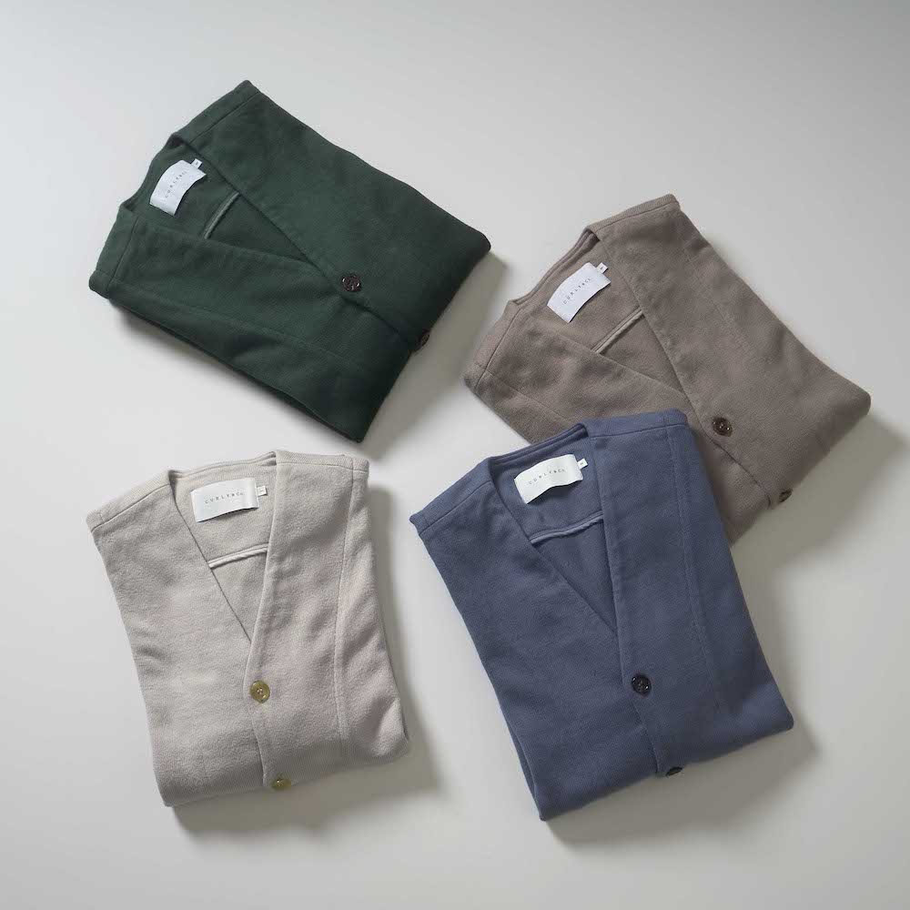 “AZTEC CARDIGAN”は太い糸を更に撚り合わせ希少なローゲージの機械で編み立てたセーターライクな天竺素材を用いています。