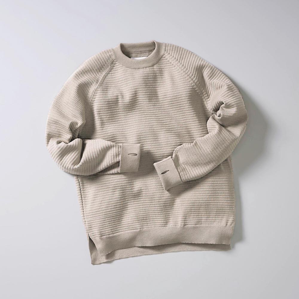“AZTEC CREW KNIT”は身幅にゆとりを持たせ、着た時に広がりのあるシルエットです。