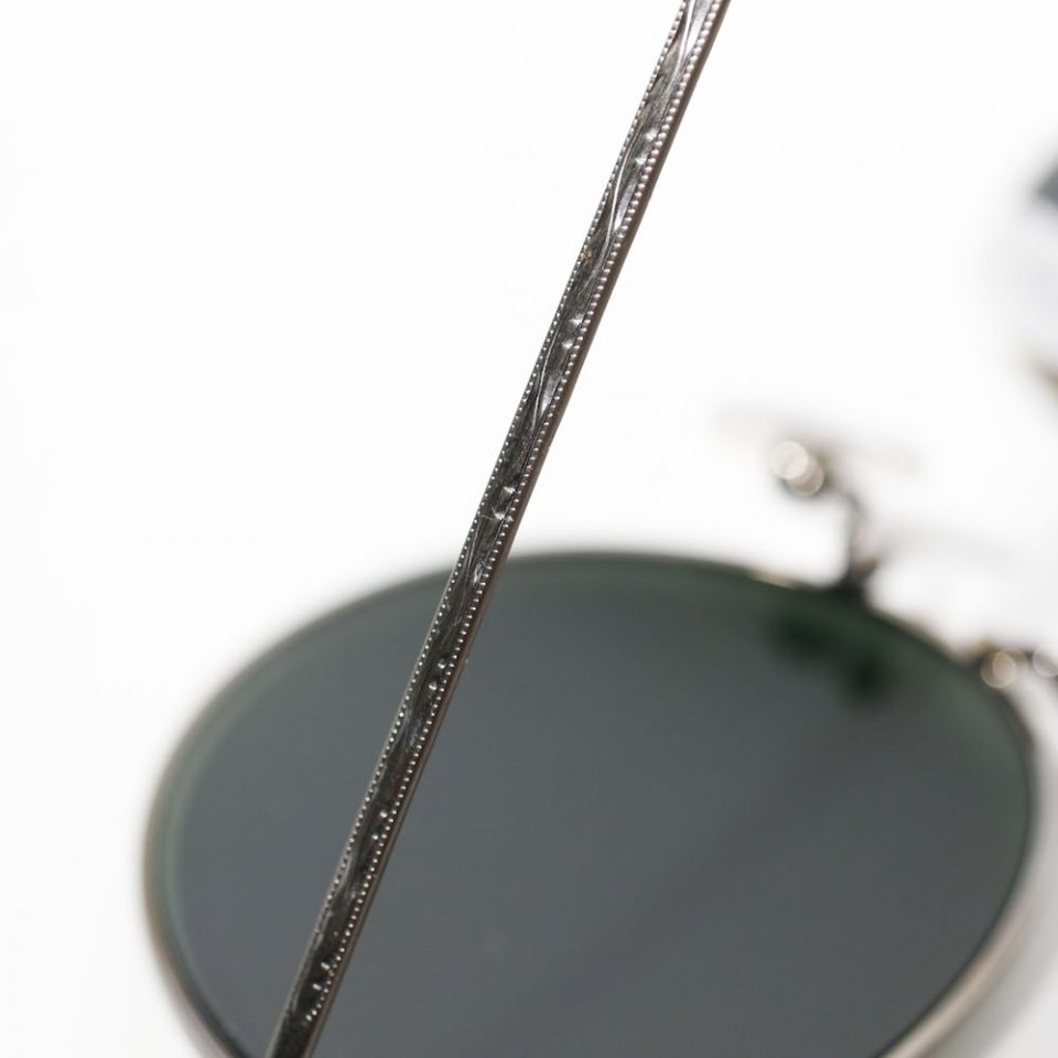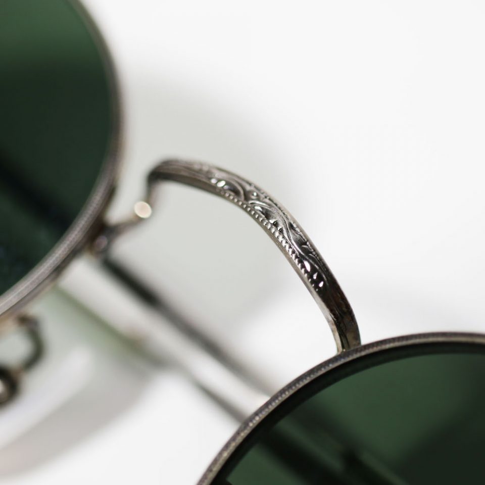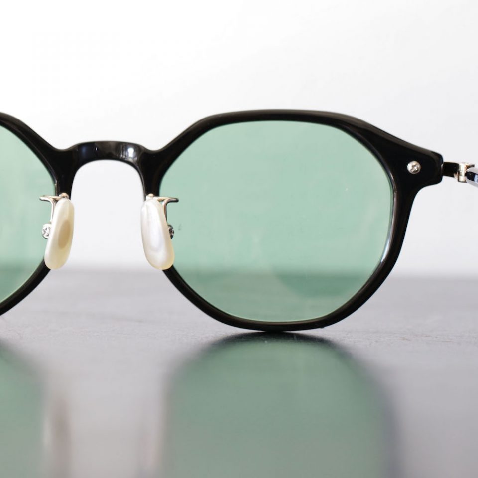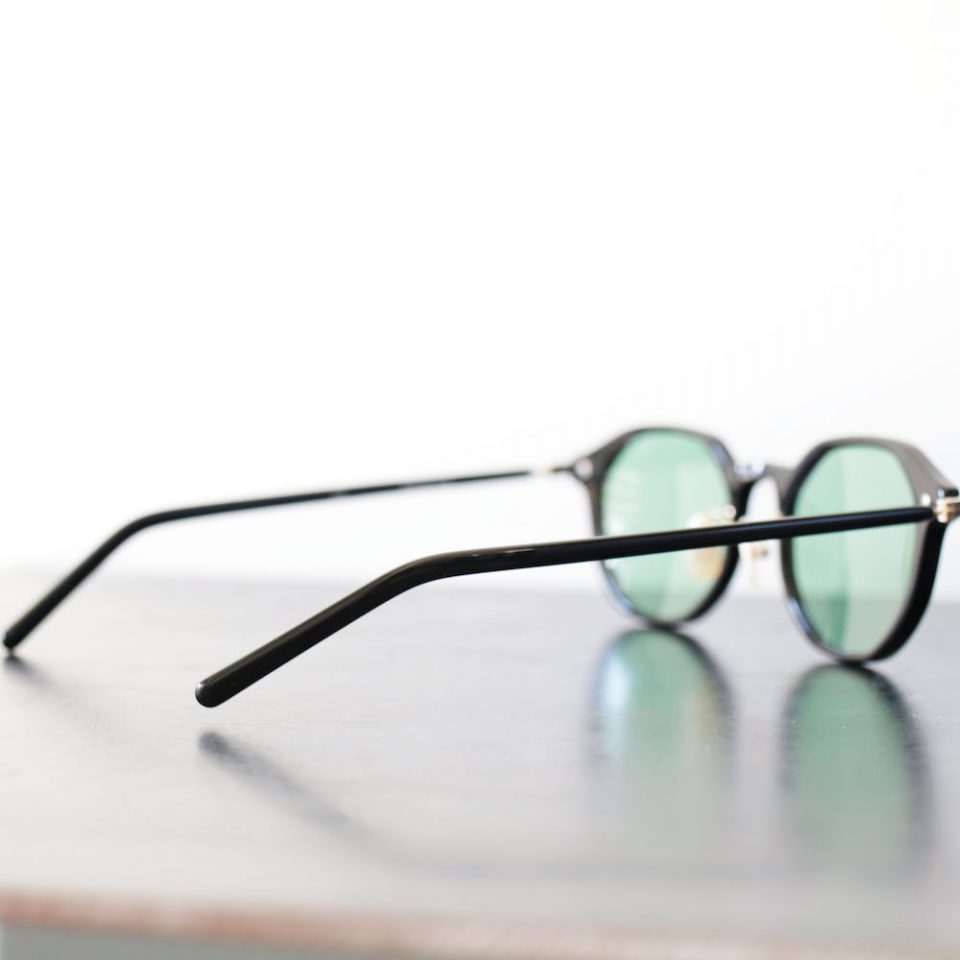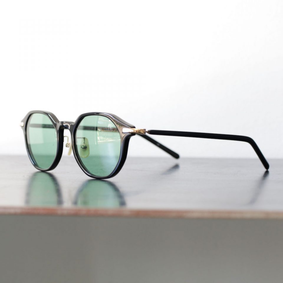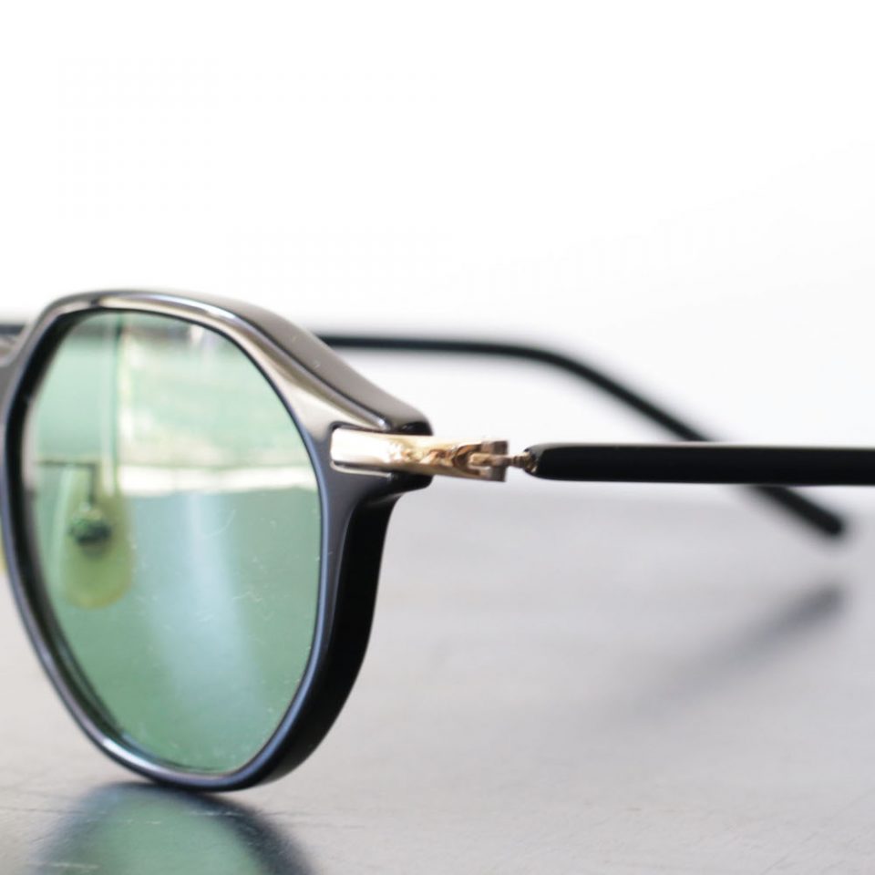 ブラックフレームに、ゴールドのパーツ、GREENのレンズと、組み合わせを一歩間違えれば多少ハードなイメージにもなりそうなところですが、むしろ上品で柔和な印象。