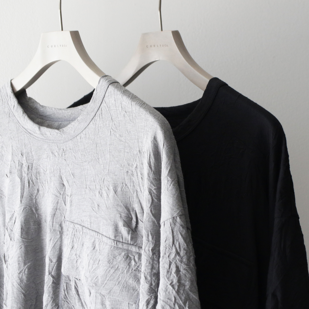 シワ加工されたTEEでオーバーすぎるサイズ感のものだとヤンチャすぎる印象になることもありますが、ここはCURLY&Co.らしく「大人カジュアル」なTEEとしてまとめています。