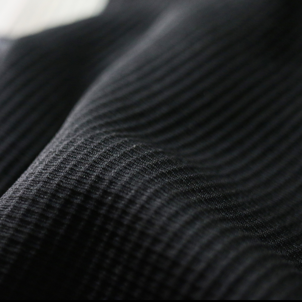 今回用いたクオーターゲージポリエステルニットは一見ざっくりとしたサマーニットに見えますが、実はちょっぴり変わった構造になっています。