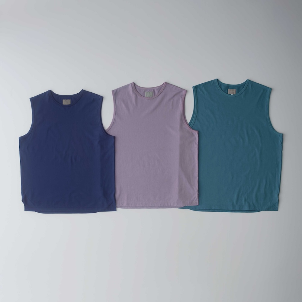 最後が肌馴染みの良い優しいタッチと透けずらい肉感、程良いカジュアル感と着心地の良さが特徴の天竺素材を使用したRELAXED COTTON SLEEVELESS TEEです。