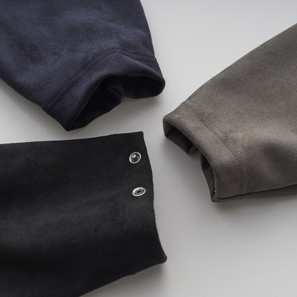 起毛された柔らかな表面感とは異なり、肌側はサラッとしているので、インナーとの摩擦も気にならず着心地も優れています。
