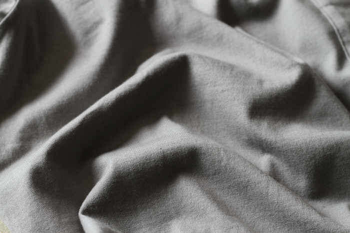 表面の毛羽感はほとんどなく、コットン100%とは思えないようなつるんとした表面感が魅力で、