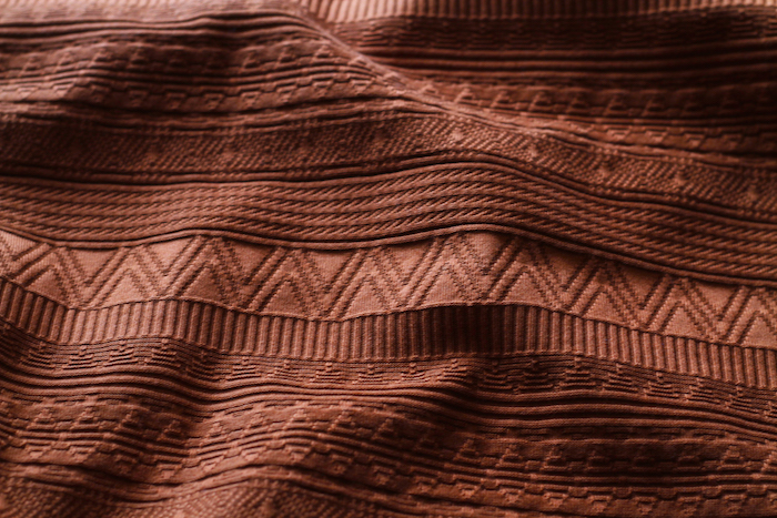 また、ジャガード素材の凹凸は陰影によって奥行きを持たせます。
