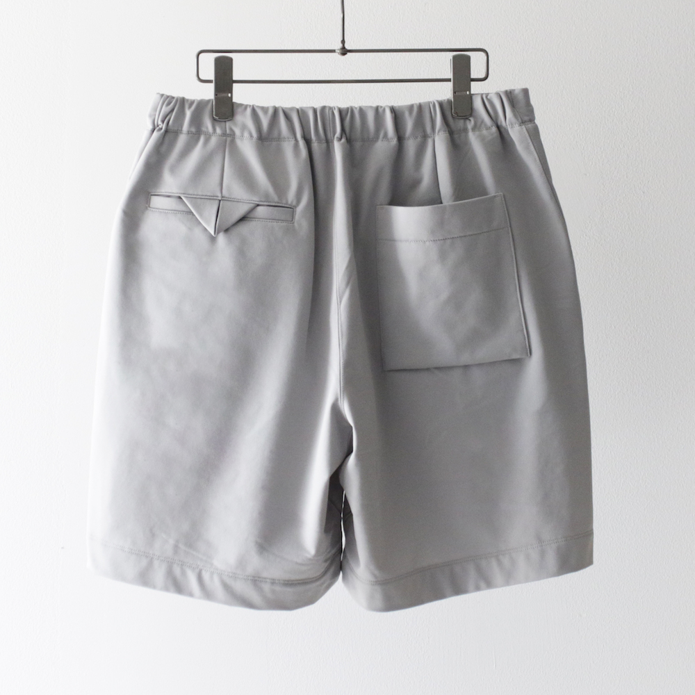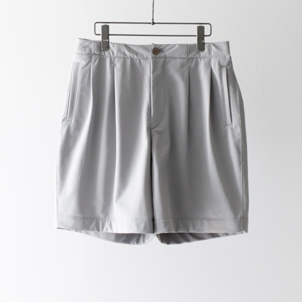フロントには2つタックをとったリラックスシルエットのショーツで、股に三角マチもついているため、動きやすくゆったりした感覚でご着用いただけます。