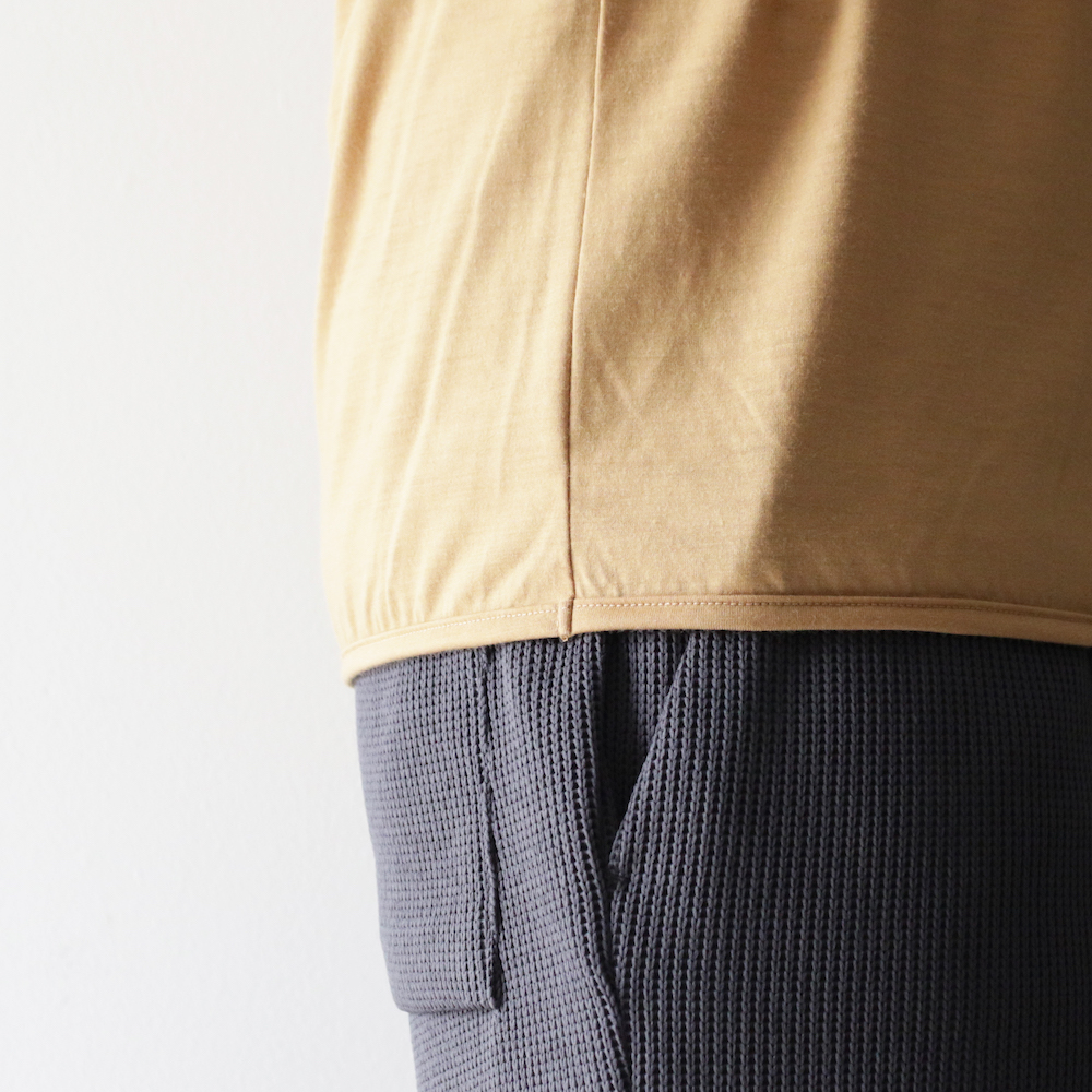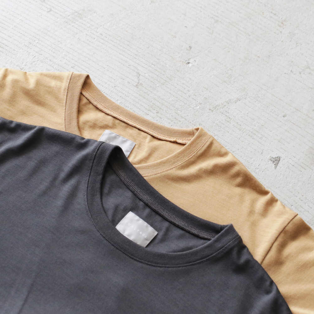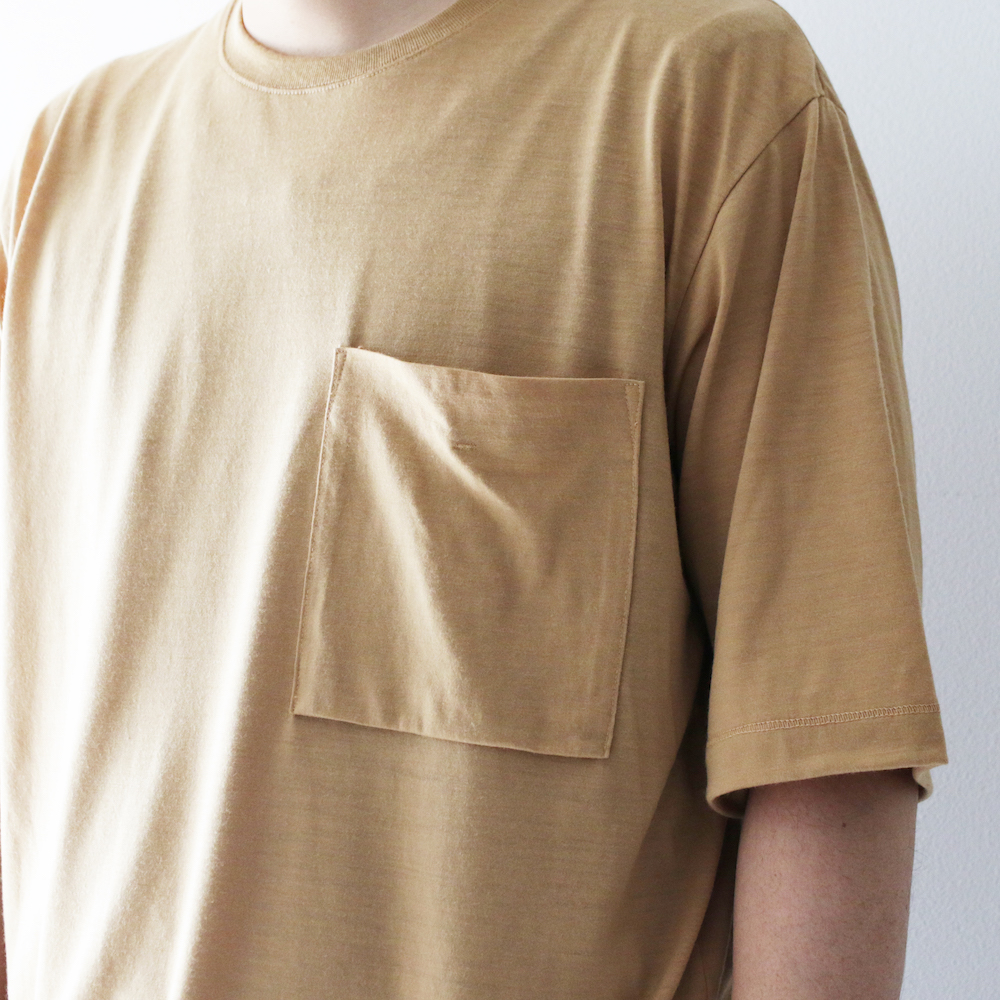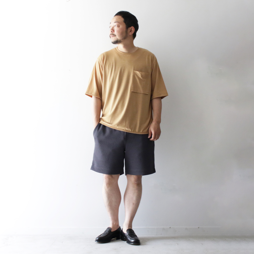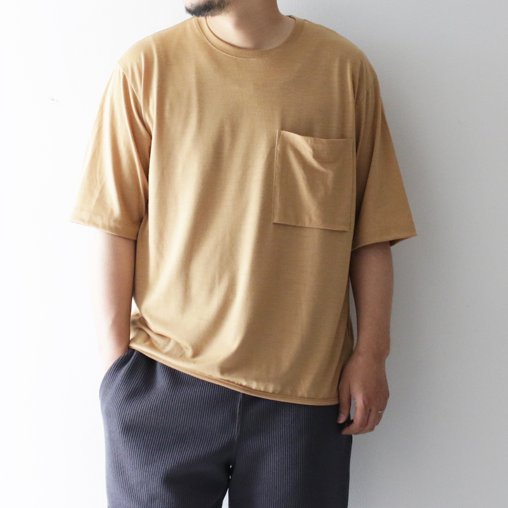 やや身幅をとった夏らしい開放感のあるシルエットに仕上げていますが、この素材ならではの落ち感がカジュアルアイテムのイメージが強いポケットTEEデザインを落ち着きのあるものに見せてくれています。