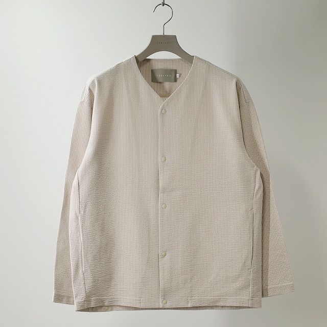 シャツとカーディガンのいいとこどりなSEERSUCKER SNAP BUTTON CARDIGAN。