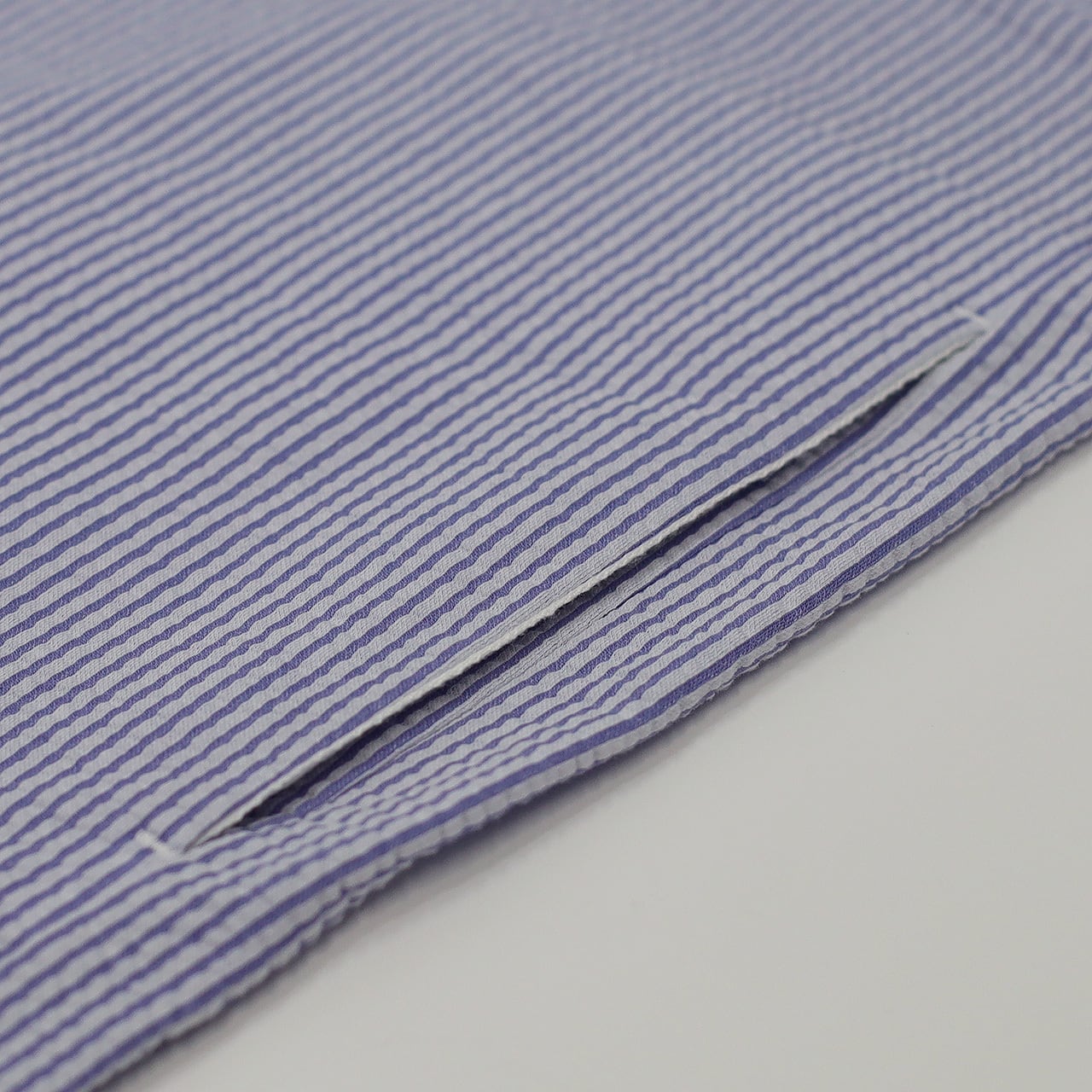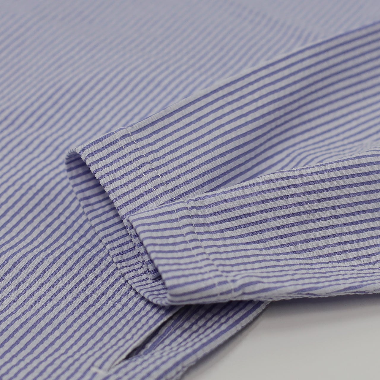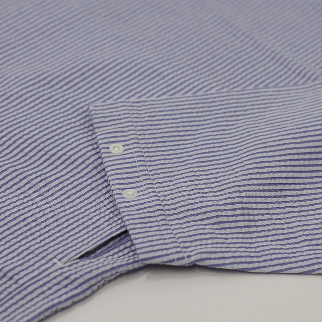 ポコポコとした凹凸のあるシアサッカー素材は肌との接地面も少なくなるので、ベタつかず肌離れも良し。