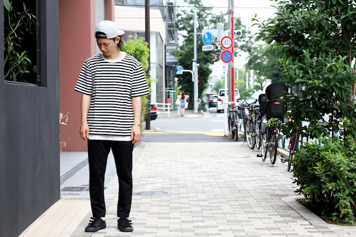 上二つのスタイルでは店長の後藤も愛用中なADVANCE HS BORDER TEEがコーディネイトの中心。