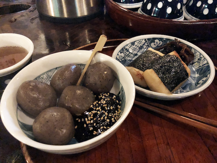 名前の通り、甘酒が有名なんですが、胡麻団子や磯辺餅、こんにゃくおでんなどなど、