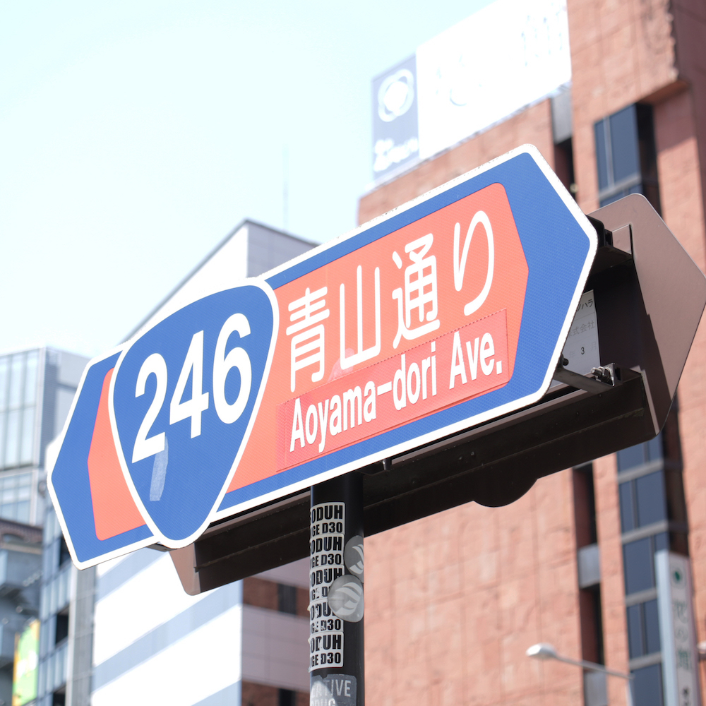出口を背にこちらの「青山通り(国道246号線)」を左に歩いて行きます。