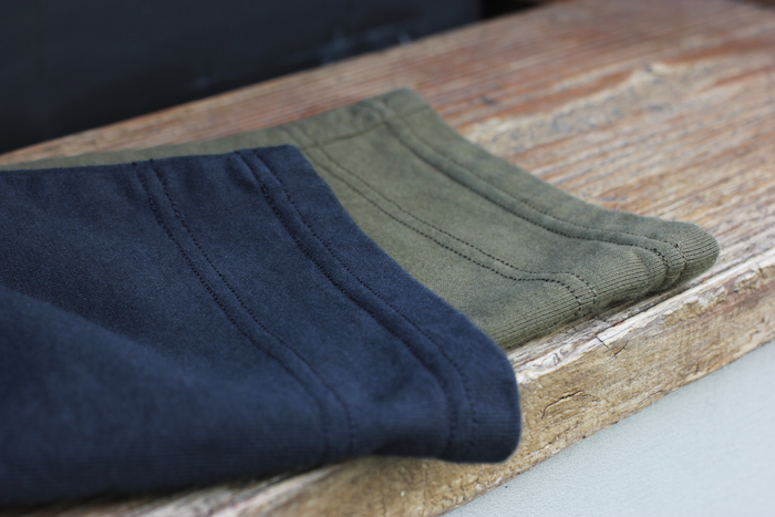 毎シーズン定番として使用されている極限まで目を詰めたオリジナルのスウェット素材を使用しました。