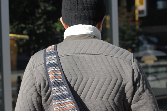ドイツ軍のミリタリージャケットに見られるジグザグ模様をモチーフにしていますが、