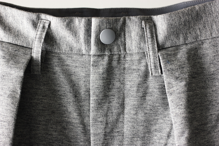 フロントにタックを摘み、腰回りにゆとりを持たせながら、