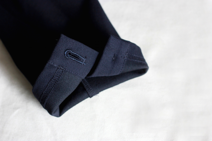 極力表面にステッチを出さず、また着用時にストレスが出ないようTEEと同じ縫い方によって作られています。