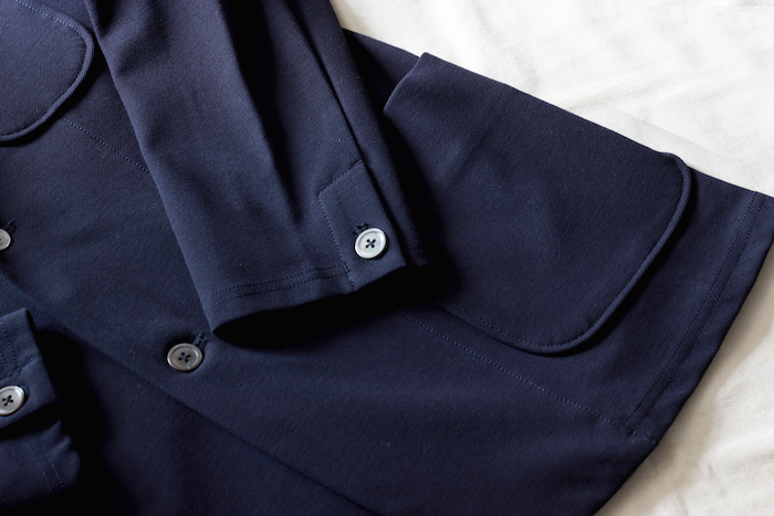前振りに着いた袖や本切羽使用のカフスなど、テラードジャケットのディテールを取り入れ、
