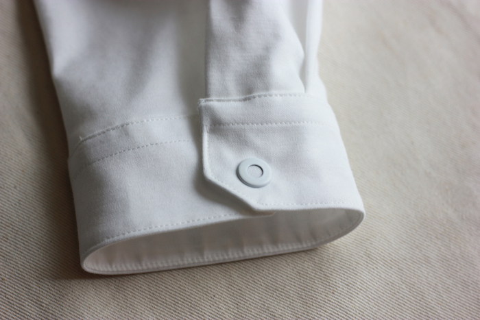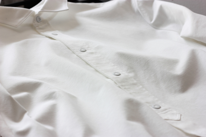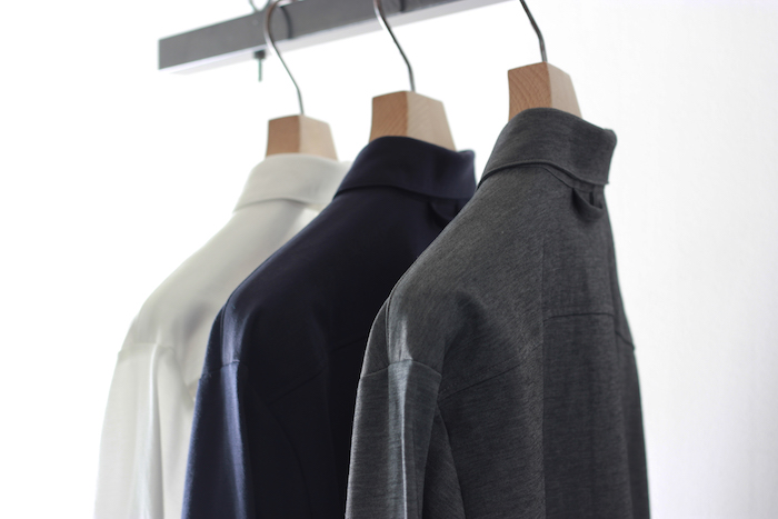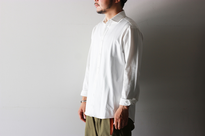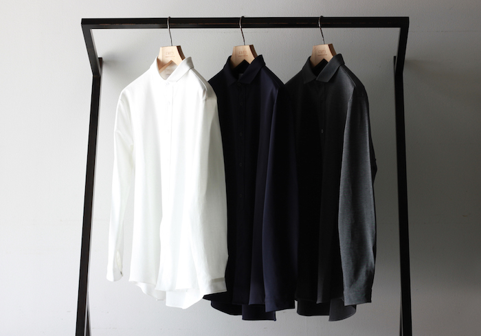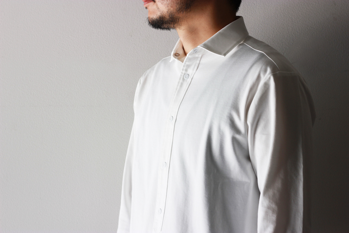柔らかいイメージのカットソーを用いながらもシャツらしいパリッと感があり、衿周りも立体的に保たれています。