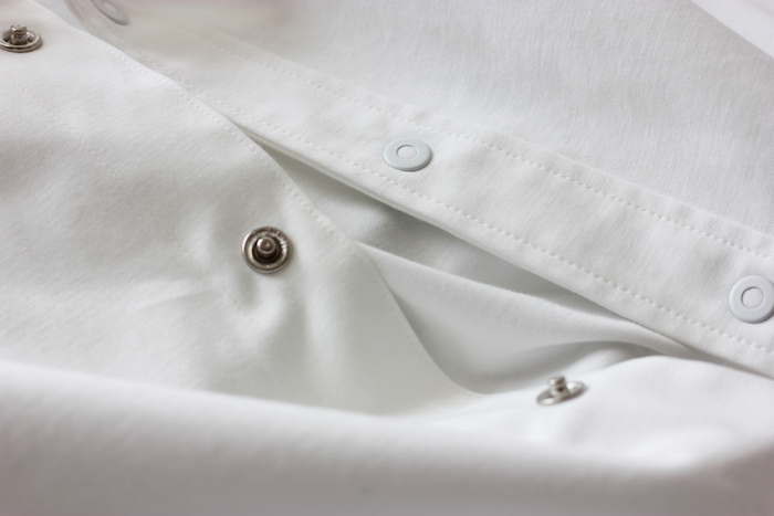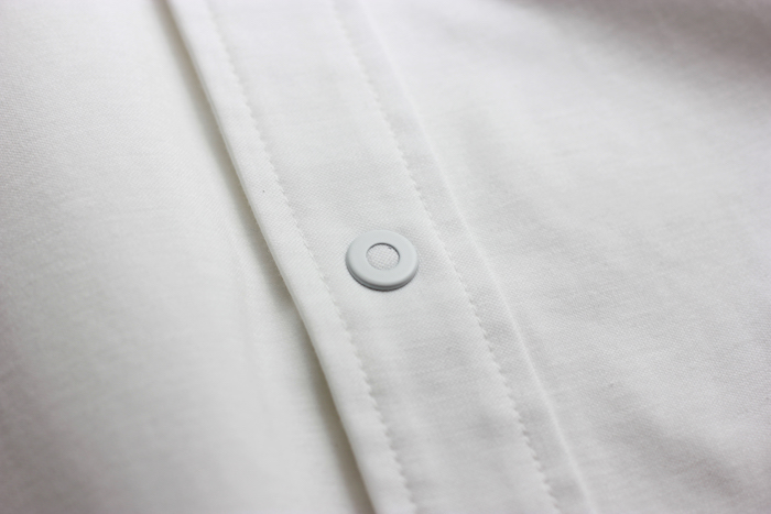 さらにスナップボタンにすることでカジュアルの要素を取り入れた仕様に。