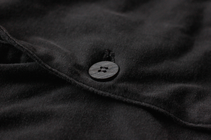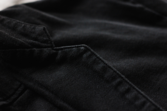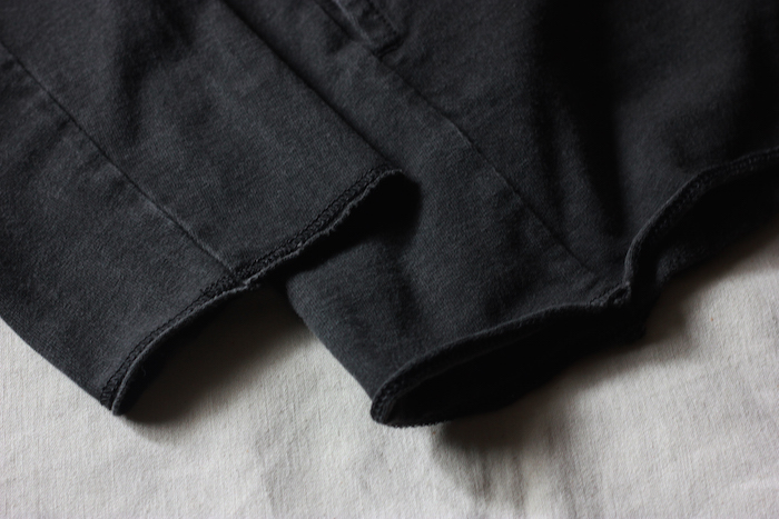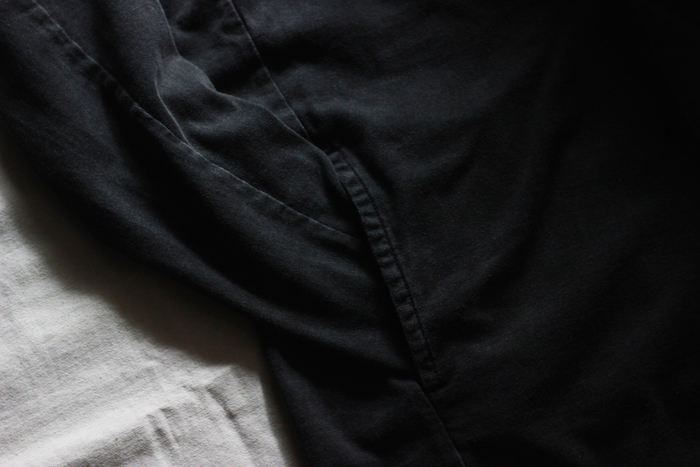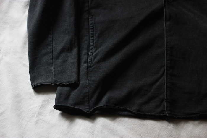 さりげなく配されたシームポケットや、あえて断ち切りに処理された袖周りや裾周り。