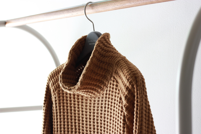 タートルネックほどの高さはないハイネックで、首回りに程よいボリュームを持つので、