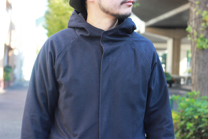ジャージーならではの軽い着心地ながらもモールスキンのようなタフな表情を持ち、バサっと音の鳴る着用感も特徴です。