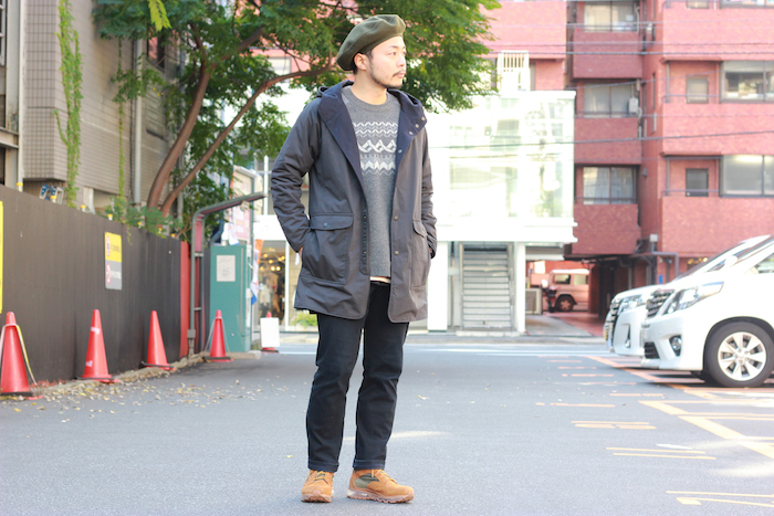 先ほどのモッズコート側と比較すると、どちらもベーシックながら印象の差があります。