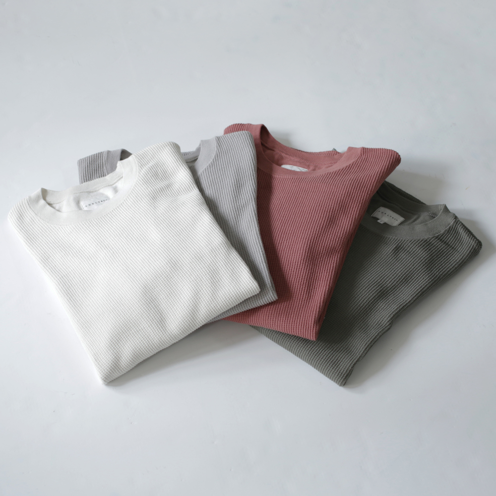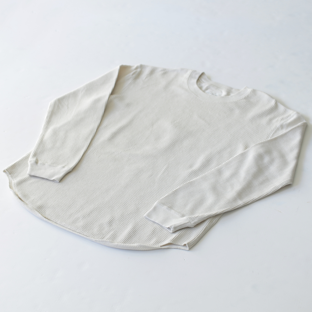 ですが、“CLOUDY L/S TEE”は、表面はワッフルのような凹凸のある生地になっていて、肌に触れる面はフラットに仕上げています。