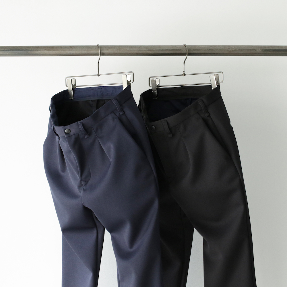 今シーズンもNAVYとBLACKの2カラーで、裾に向けてテーパードを効かせたベーシックなシルエットが特徴です。