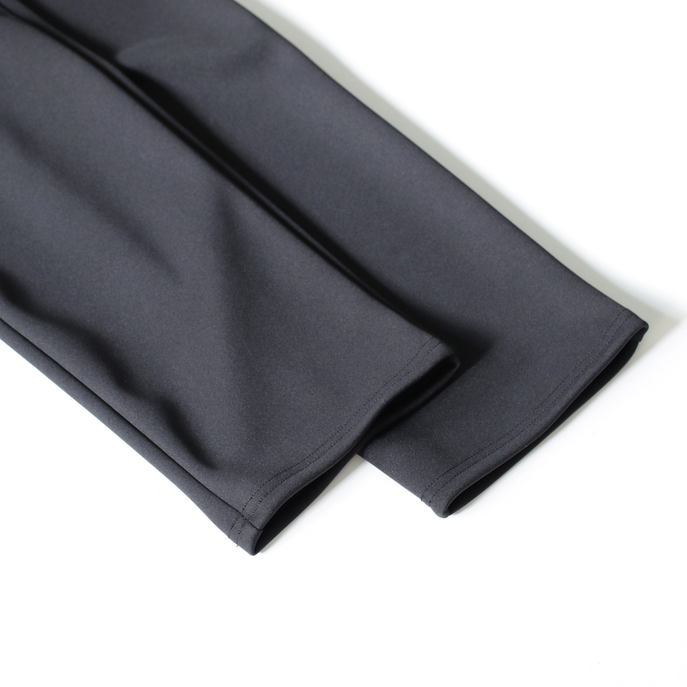 また、スラックスのような見た目とは裏腹に、ジャケットと同じ伸縮性のあるジャージ素材を使用し柔らかな履き心地を実現しています。