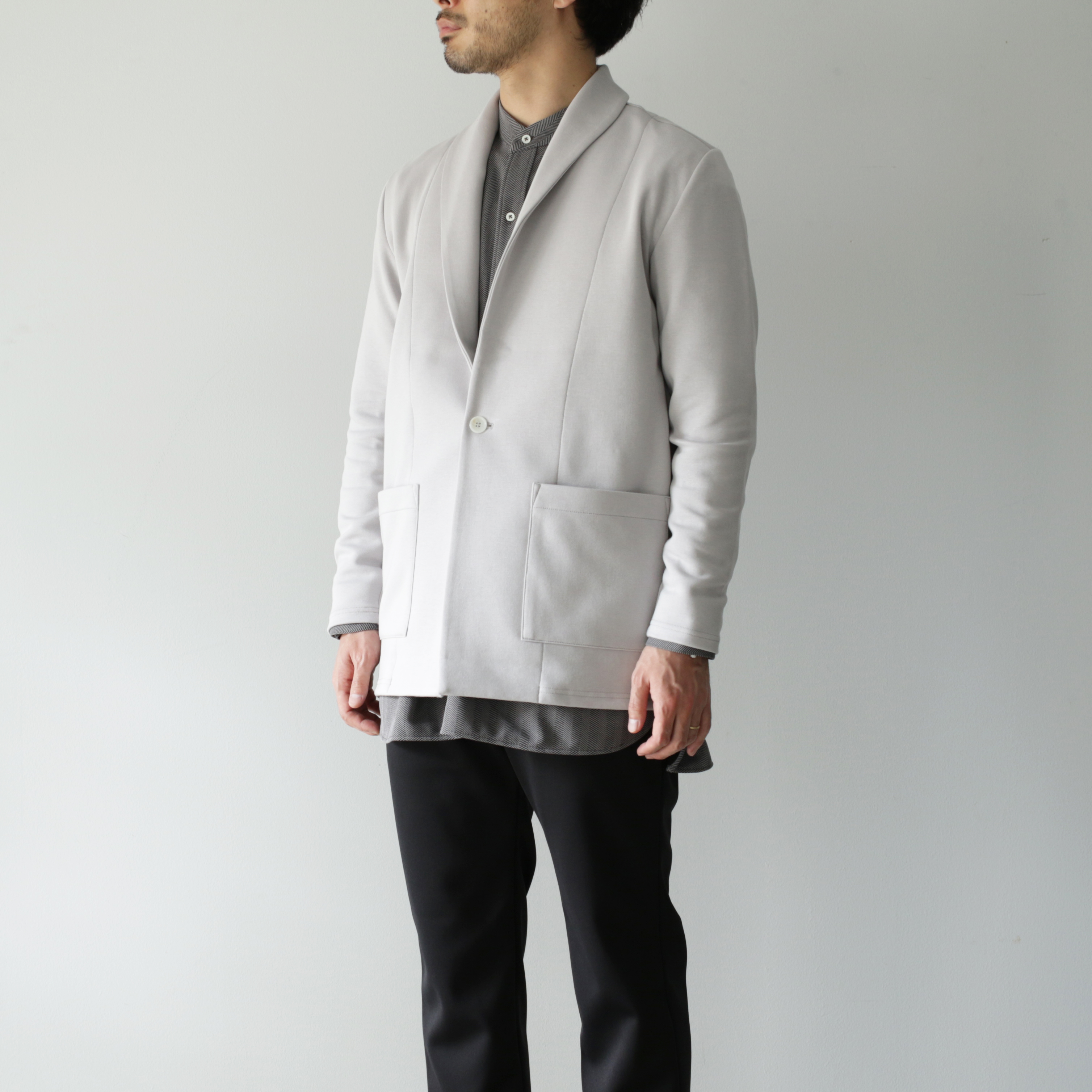 ガウンと聞くとラグジュアリーな印象があり、普段着として袖を通すのが難しいですが、こちらはジャケット感覚で気兼ねなく羽織っていただけます。