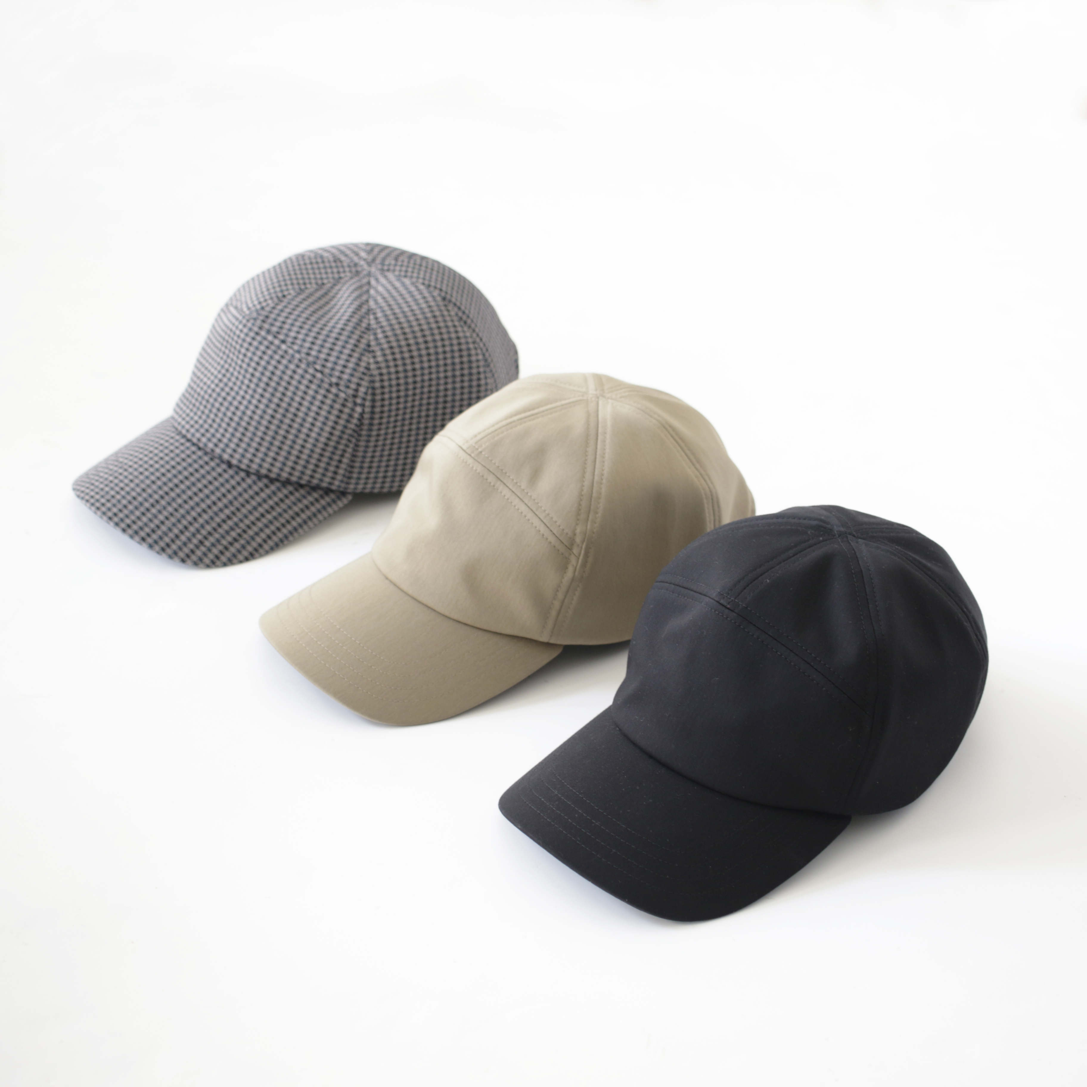 UPLIGHT CAMP CAP “Plain”とUPLIGHT CAMP CAP “Check”はアイレットや天ボタンなどのディテールを削ぎ落とし、ミニマルに仕上げたベースボールキャップ。