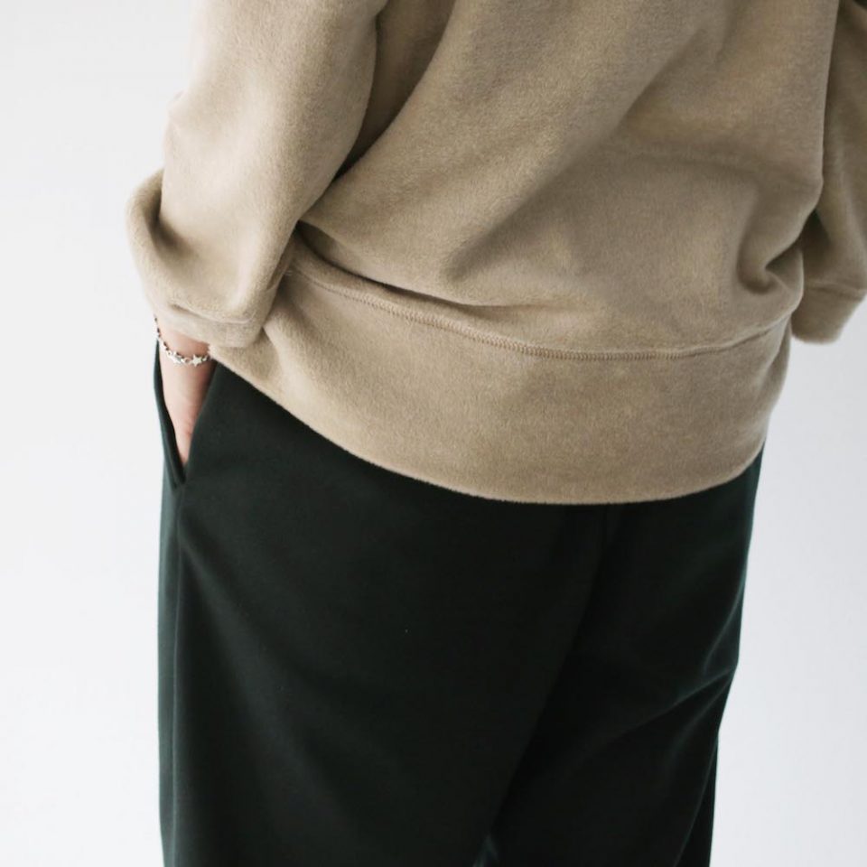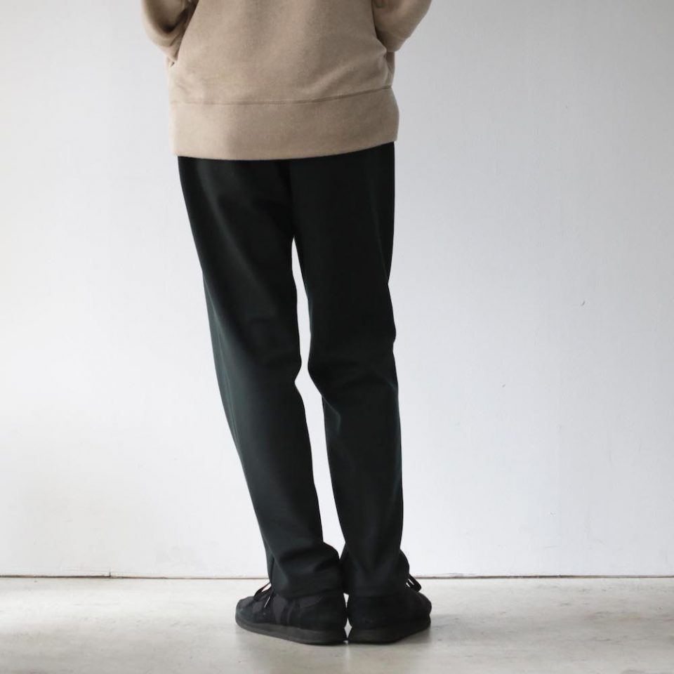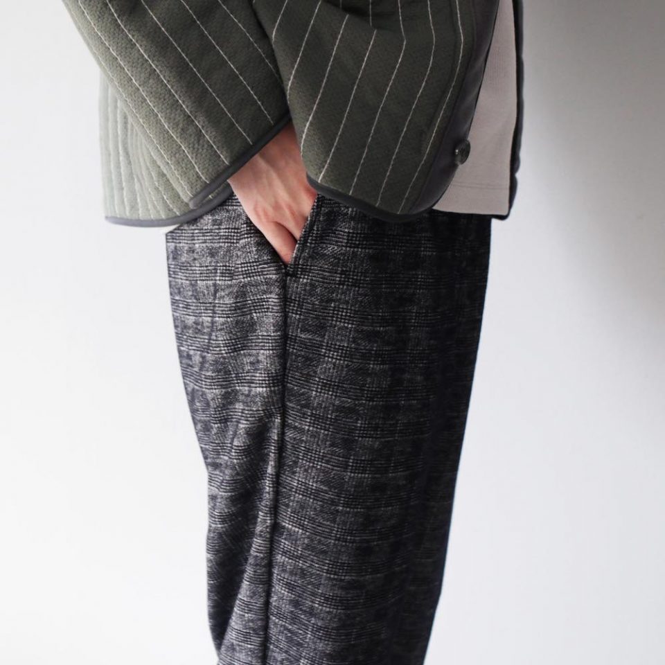 無地タイプは、先日のJOURNALでもご紹介しましたが、CURLY&Co.らしい、きれいなテーパードを効かせたシルエットのボトムスです。