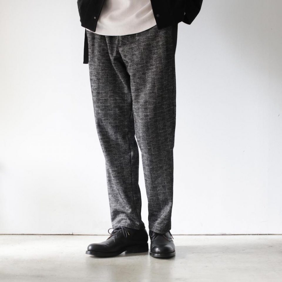 素材違いのADVANCE BEZ TROUSERSは、PlainもCheckも各々異なる良さを持ったアイテムです。