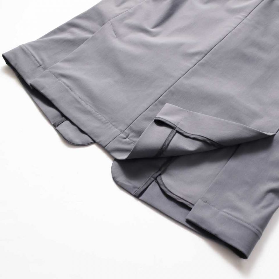 こうしたテーラードジャケットではあまり見かけない独特なカッティングは、伸縮性のあるニット(編み物)だからできること。