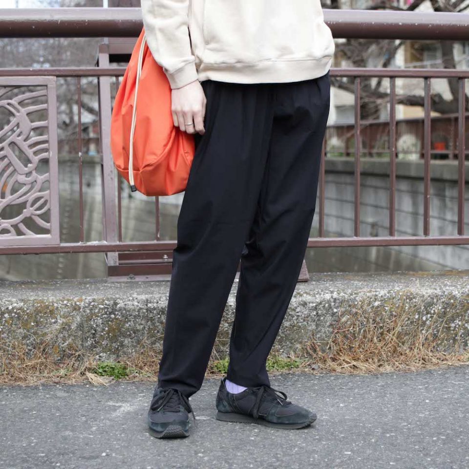 単品のボトムスとしても非常に活用しやすく、更には従来のセットアップのボトムスと比べてデザインにより特徴があるため、シンプルスタイルにおいては特に存在感を発揮します。
