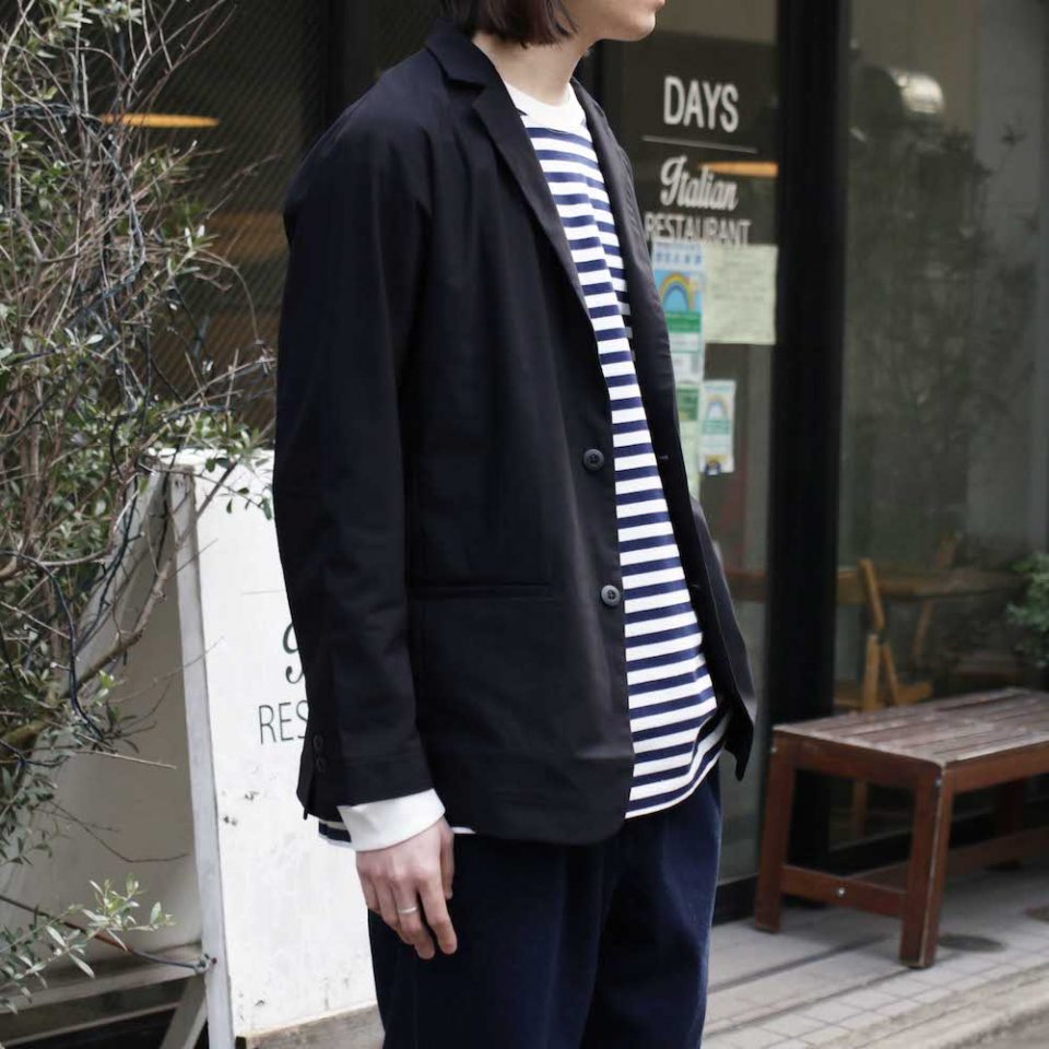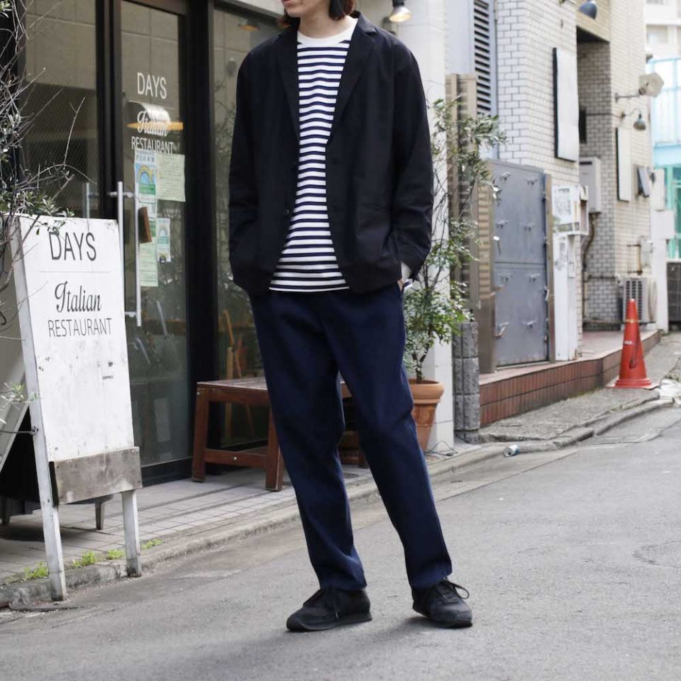 「テーラードジャケット」「ボーダーTEE」「デニムパンツ」と、言葉にしてみると何の変哲もないアイテムの並びなのですが、22SSでCURLY&Co.がリリースしたこれらのアイテムは、そのどれもがベーシックとは少しだけ違ったひねりが加えられたアイテムたちです。
