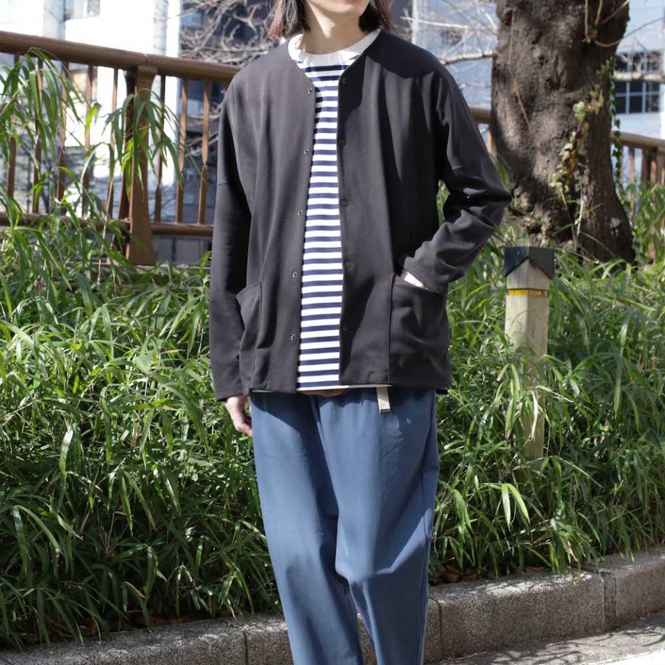 カジュアルの代名詞と言えるボーダー柄も、FLEX SNAP CARDEを羽織れば上品な雰囲気でまとめてくれるでしょう。