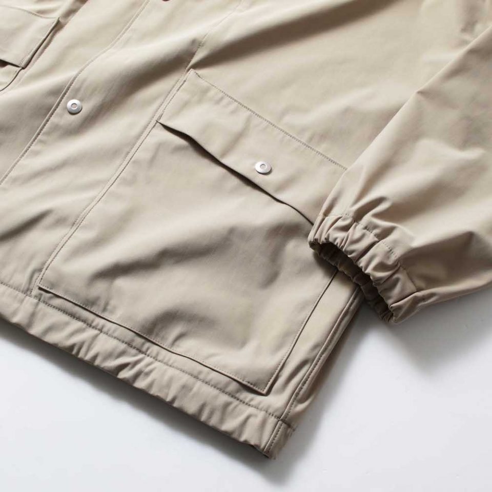 基本的にナイロン素材で作られることの多いコーチジャケットですが、CURLY&Co.のAIRY COACH JACKETは、ポリエステルトリコットを用いています。