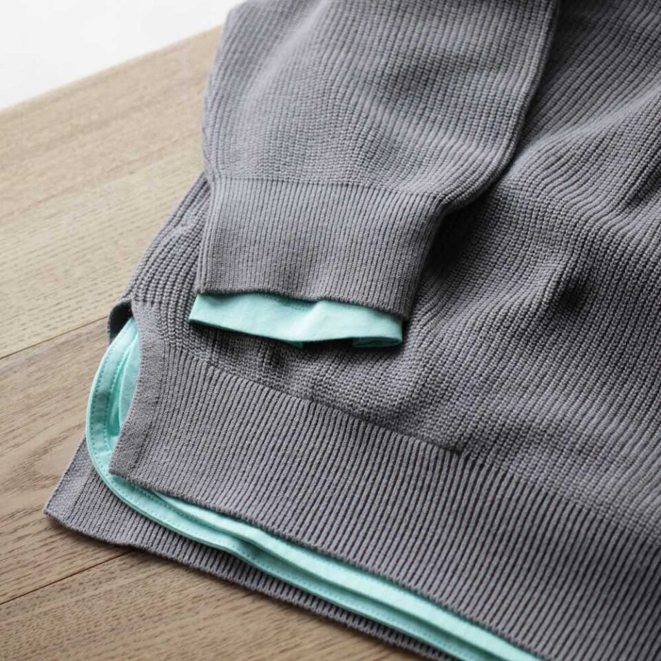 ベーシックなカラーの春ニットの下に、チラッと覗かせたMINTのロンTEE。