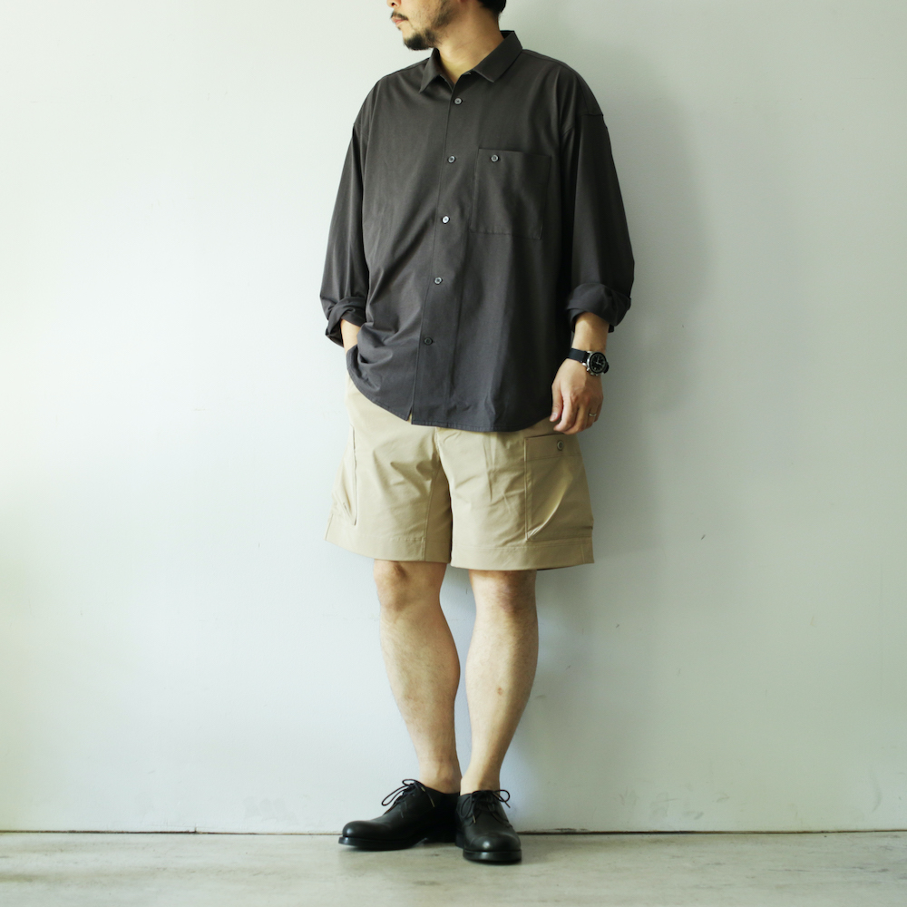 実はカジュアルなアイテムはショーツだけで、あとは比較的綺麗目のアイテムであるにもかかわらず、非常にリラックス感のある見た目に仕上がりました。
