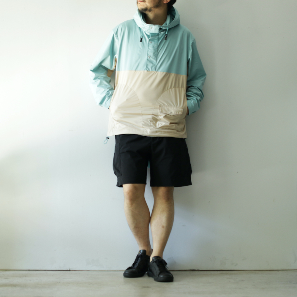 今シーズンのラインナップで、「LONGSLEEVES × SHORT PANTS」と聞いたら個人的に真っ先に思い浮かんだのがこちらのAIRY BICOLOR ANORAKを使用したこちらのスタイルでした。