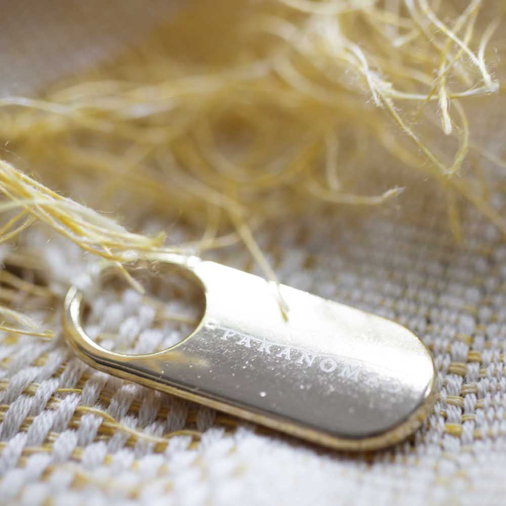 ネームロゴ入りのゴールドのプレートも付いていて、ネックレスのようにさりげなく風になびく様も、可愛らしいポイントかと思います。