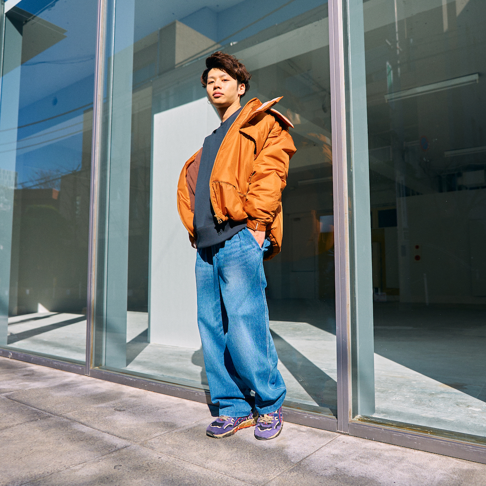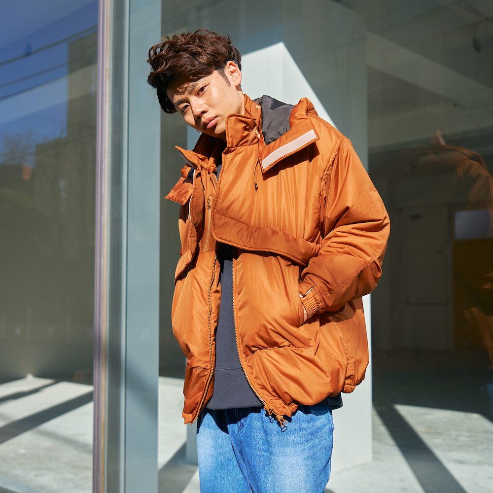 スタイリングとしては、インナーとボトムスをカジュアルに、そこにonoma.labの軽量かつあたたかいアウターを主役に羽織ってもらいました。
