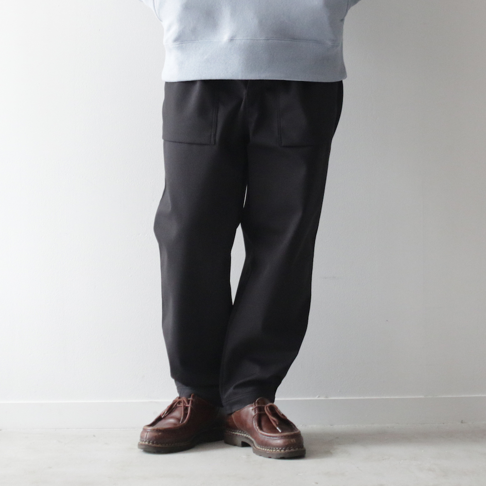 私も店頭で、お客様が履かれた瞬間に「え、軽い!!」と驚かれている姿をよく見かけるアイテム、TEXBRID® PLEATED HEM PANTSは、生地が分厚いわけではないので、長いシーズン活躍できる便利パンツです。